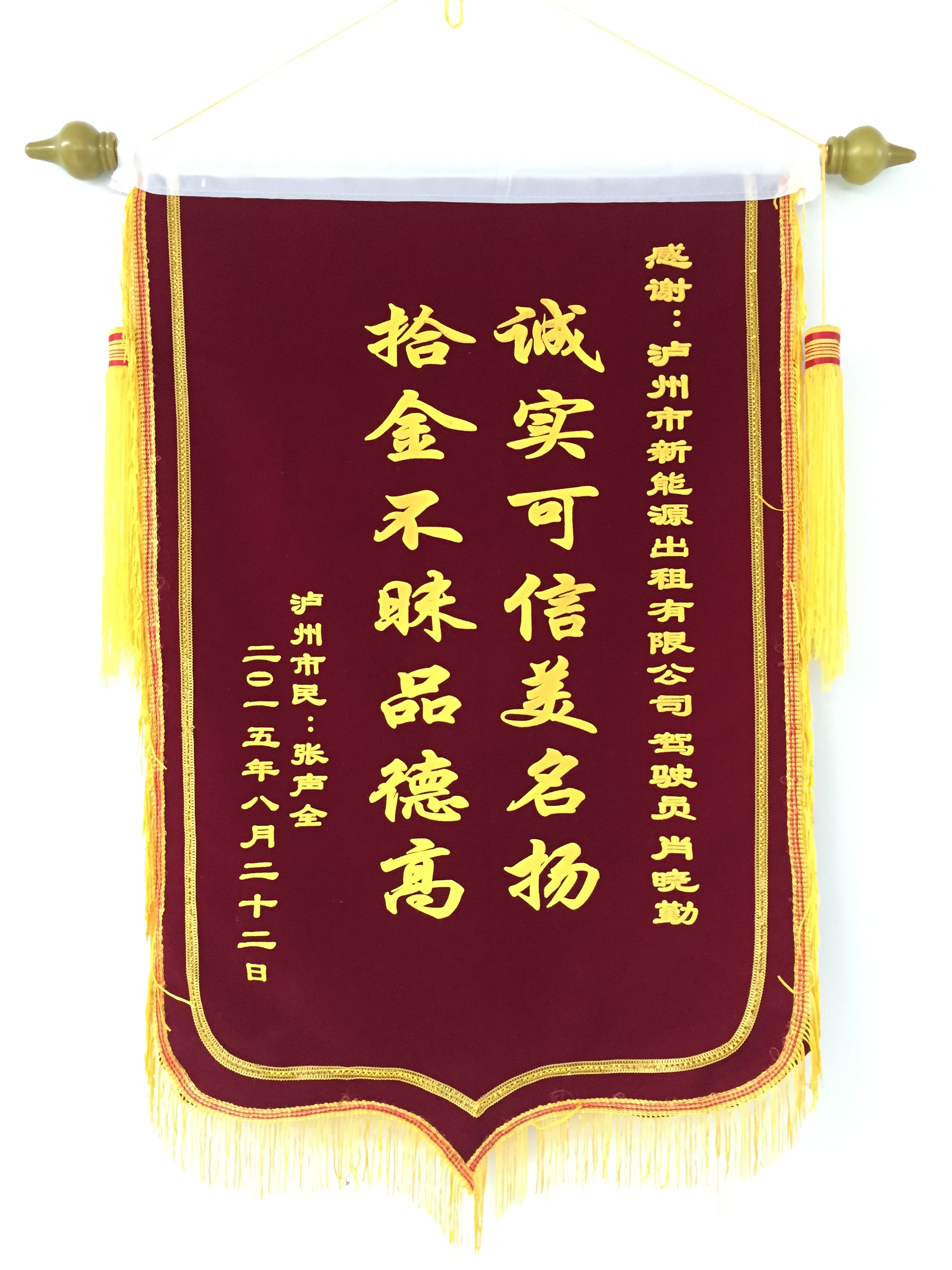 川EA38B3駕駛員袁宏民7月30日拾到三星手機一部,已交還乘客。乘客送來錦旗感謝