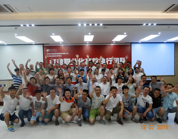 2015年7月18日全司管理人員參加由高投集團(tuán)和高新區(qū)管委會(huì)組織的《職場(chǎng)商務(wù)與政務(wù)禮儀》、《打造職業(yè)化高效執(zhí)行團(tuán)隊(duì)》的培訓(xùn)后大合照